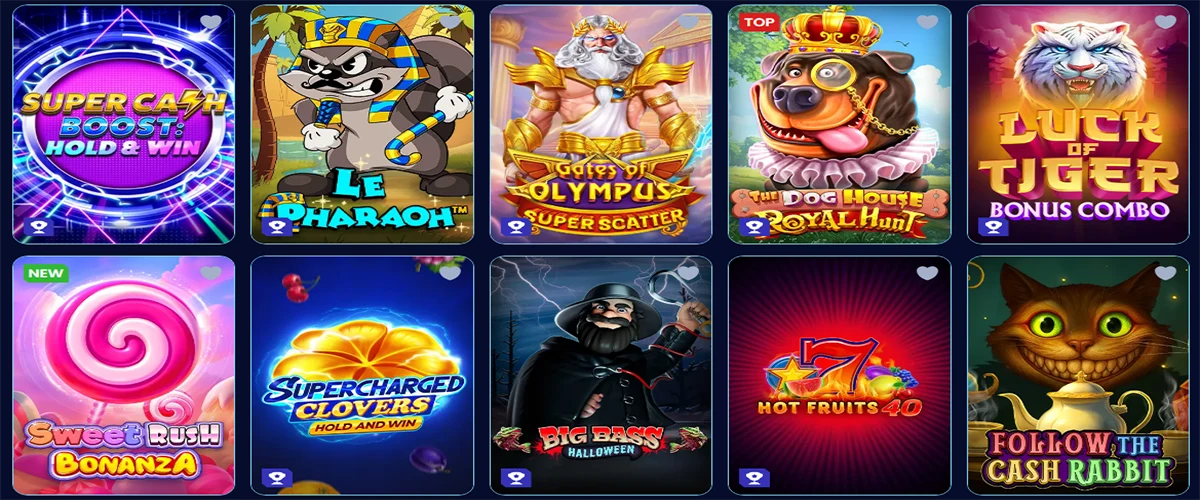 Mēs piedāvājam plašu spēļu klāstu, kurā atradīsiet visu nepieciešamo aizraujošai spēļu pieredzei. Mūsu kolekcija ietver slotus, džekpotus, galda spēles, tiešraides kazino un video pokeru.