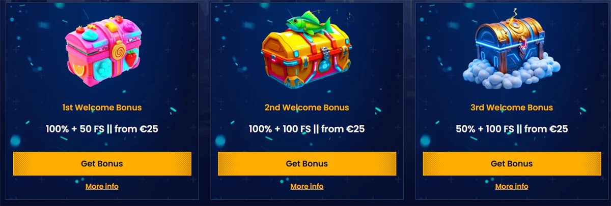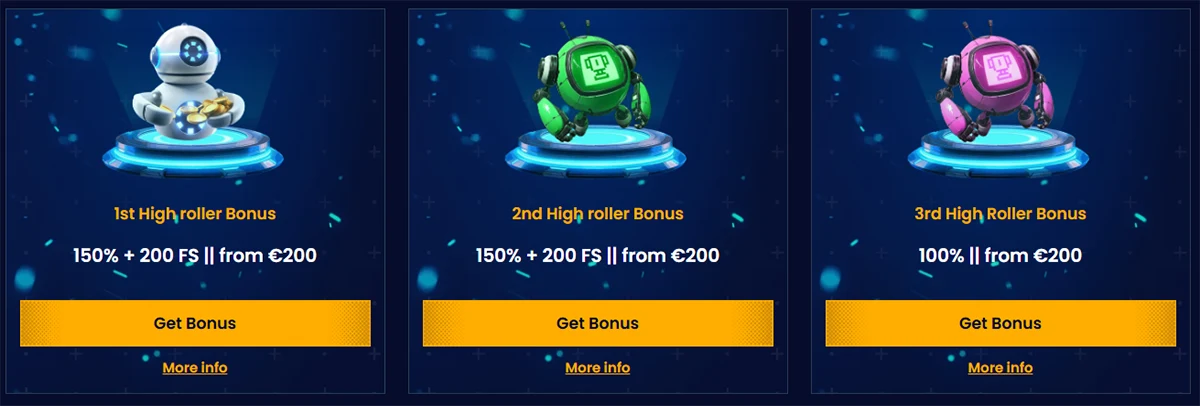 Mēs esam izveidojuši trīs dažādus sveicināšanas paketus, lai apmierinātu katru spēlētāja stilu. Engineer Package piedāvā 300% bonusu līdz €3,000 plus 300 bezmaksas griezienus.